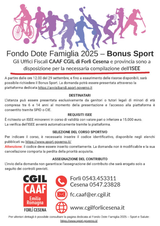 A partire dalle ore 12.00 del 29 settembre, e fino a esaurimento delle risorse disponibili, sarà possibile richiedere il Bonus Sport.